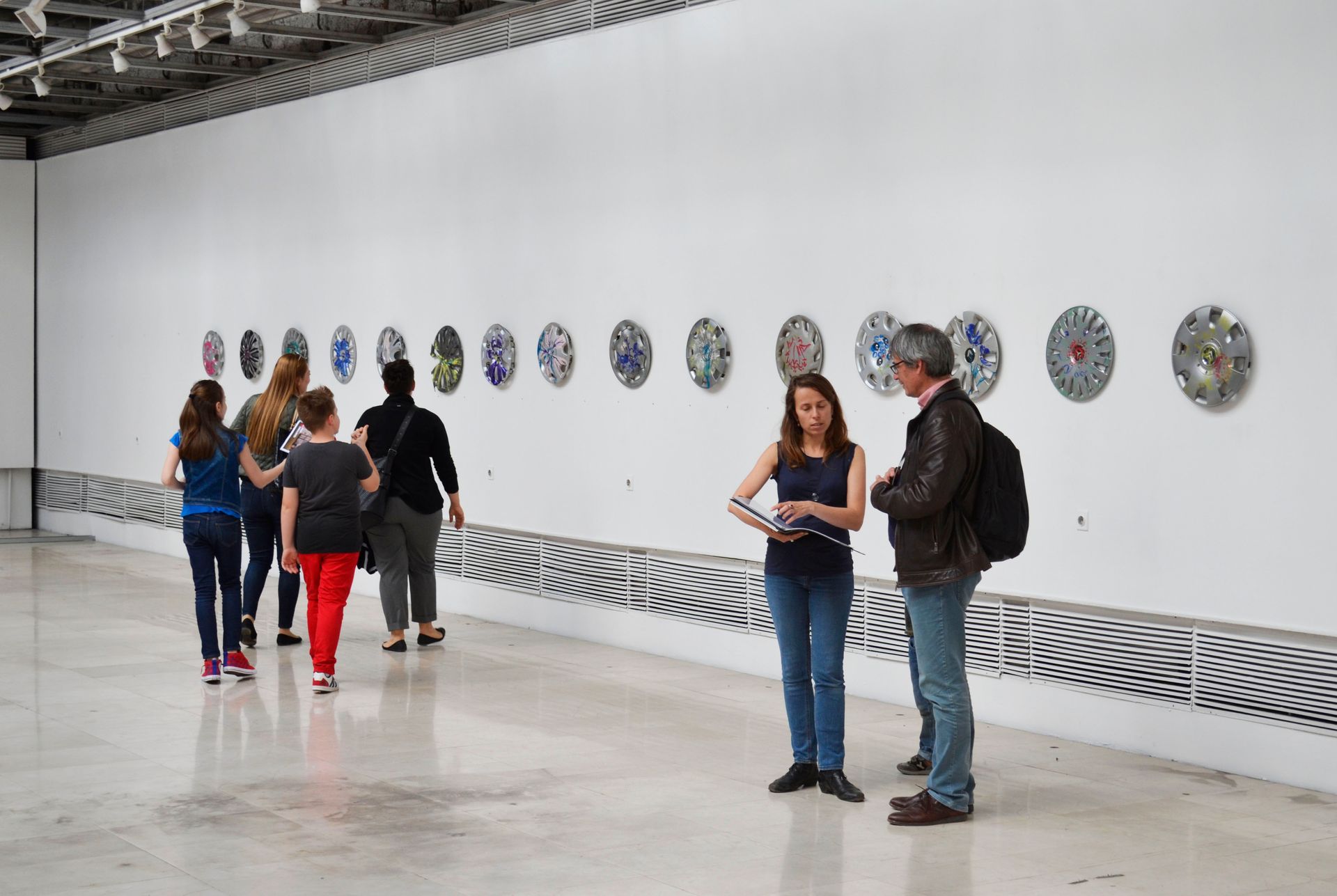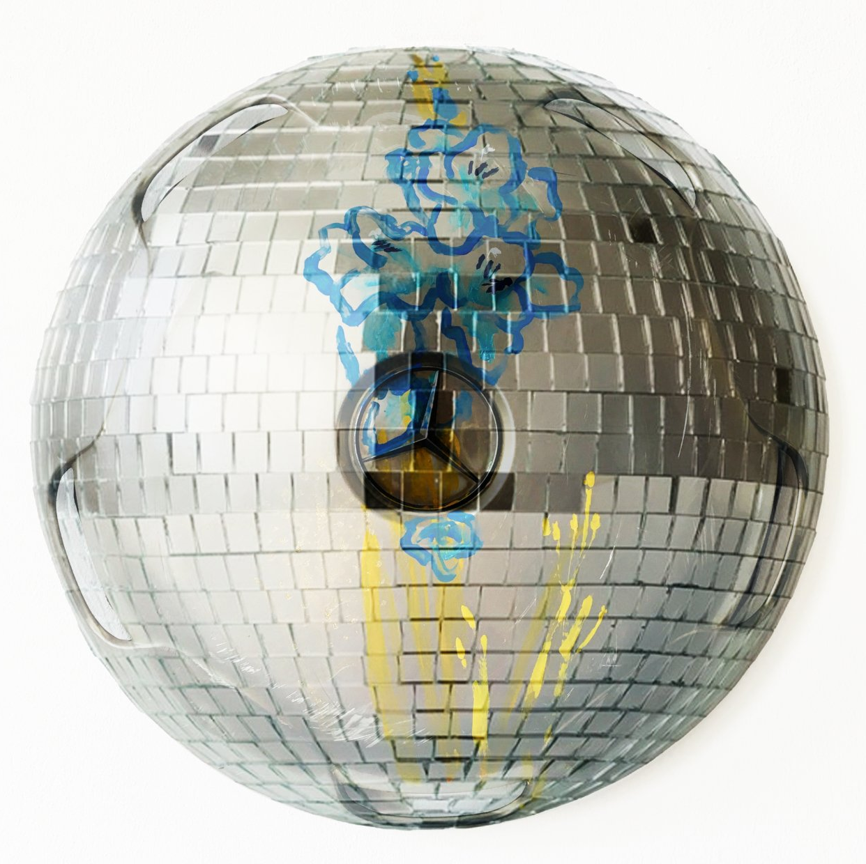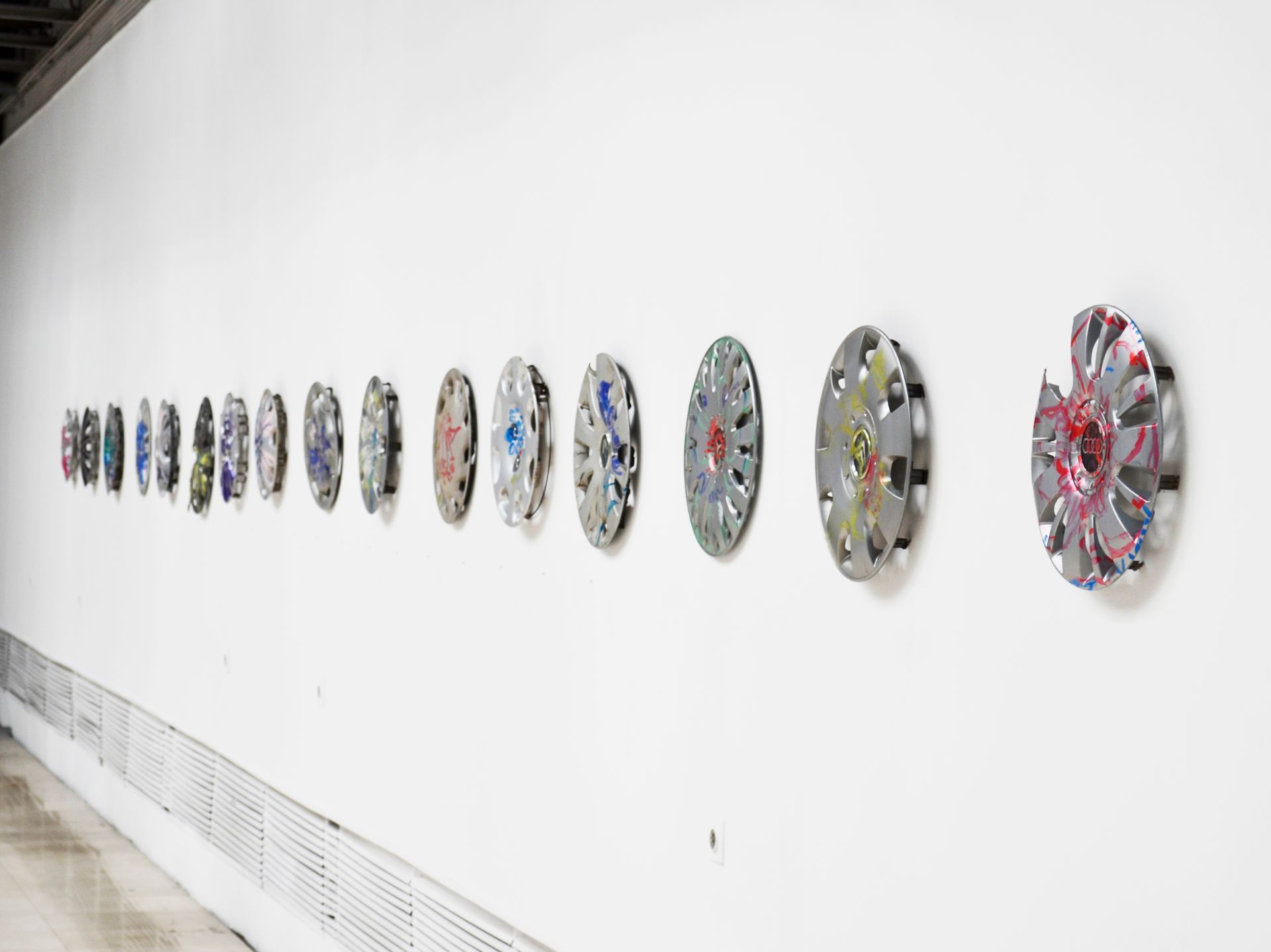 In artistic travel projects, Shpresa Faqi explores living spaces and movement from a variety of perspectives: flight and privilege, cultural encounters, and internal and external boundaries. She documents places and portrays people with drawings that become projector installations in public spaces, creating floral nail polish paintings on found hubcaps and collages from cell phone photographs meet space-related oil painting.