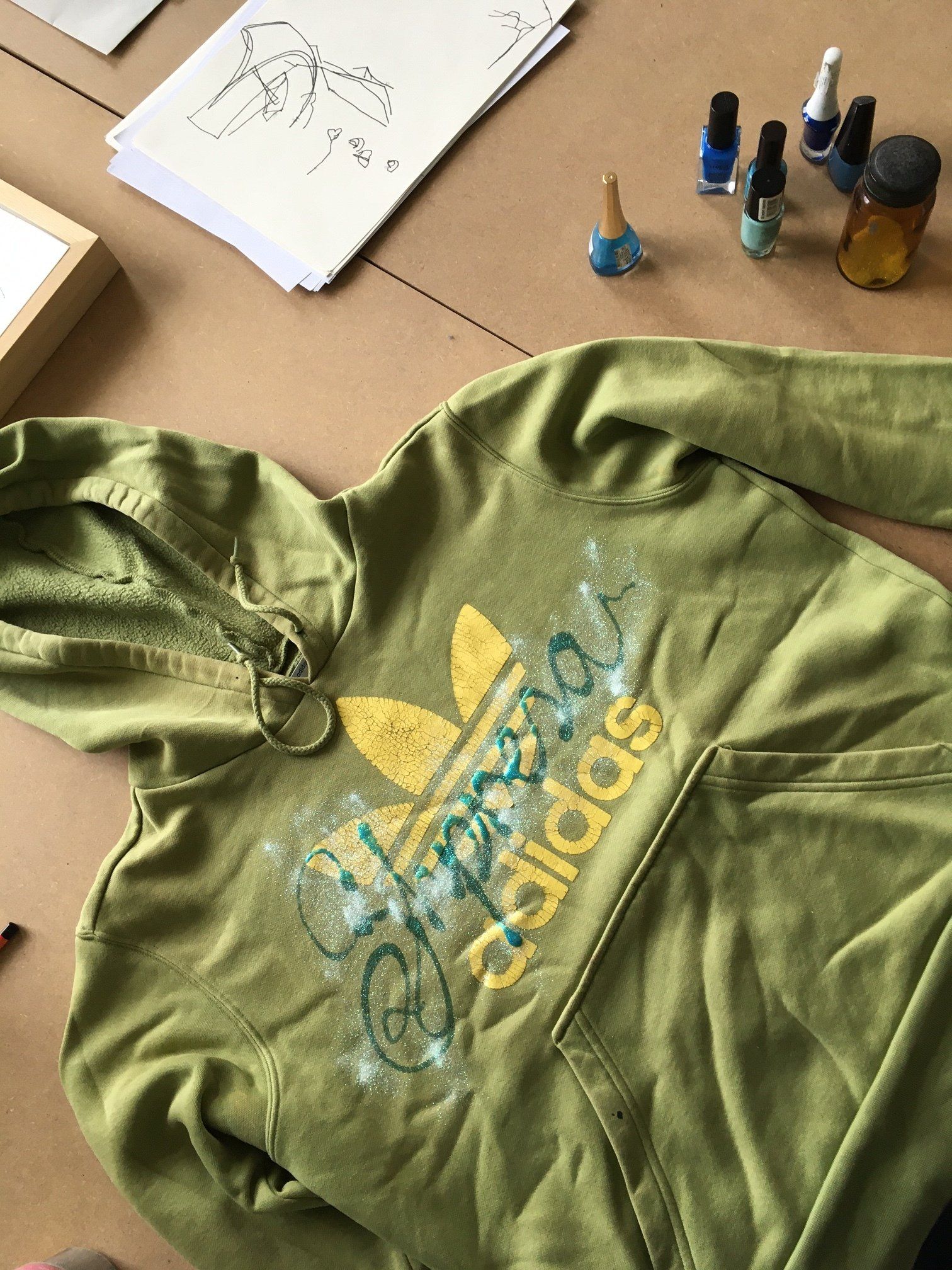 These clothes are all second hand I write and draw with nail polish on them, so each piece in unique. More are about to follow.