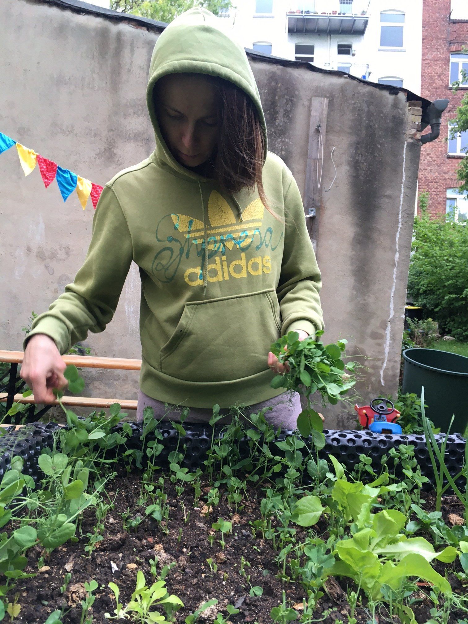 I have a passion for fashion and would like to make everything on my own but can not sew haute couture. So I´m into this sustainable fashion content like second hand clothes and because I had some nail polish left overs from the driving wheel covers in 2018 - and wanted to create some positive massages in uncertain times. The idea came to me to just write: lively or Shpresa - which means hope in Albanian by the way - so that´s useful I think.